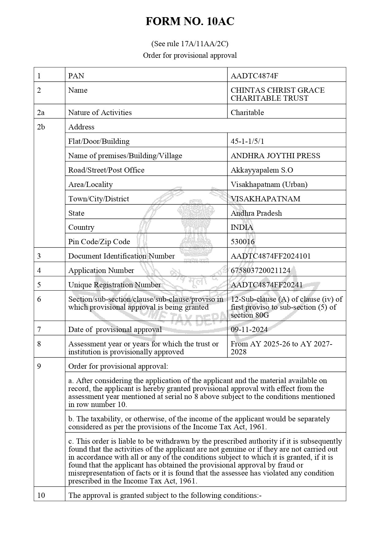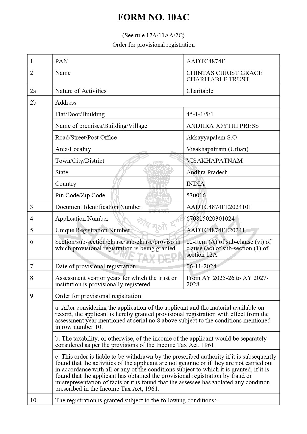 The CHINTAS CHRIST GRACE CHARITABLE TRUST